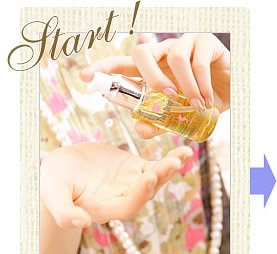 STEP 2: 护发精油在手掌上抹开,然后均匀地涂抹在发梢处。