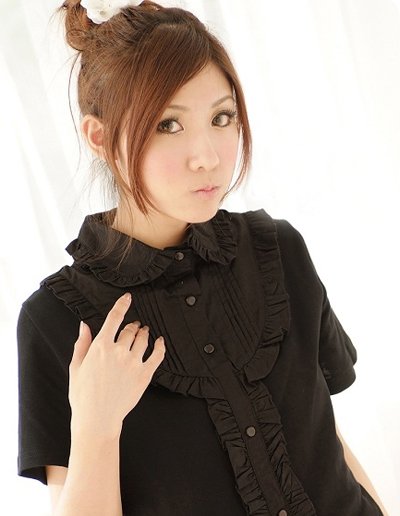斜分刘海+花朵元素 上班后更喜欢上了黑色衣着,但是总觉得有些死气沉沉。换个巧克力发色还不够的话,不如梳起丸子头,加上夸张却不造作的发饰,配上略带淑女的刘海,绝对高回头率!