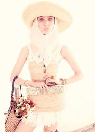 浑圆的草帽搭配修长的秀发,体现了视觉上的美感
