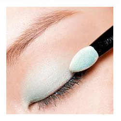 1、选择亮冷色系偏亮的眼影粉作为基础底色,均匀涂满整个眼窝,并将冷色眼影膏蔓延到内眼角,使眼神明亮起来。