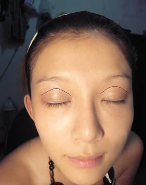 眼妆画法DIY步骤 7:上色完成后的效果示范,因为不想太夸张,因此深色眼影的位置约在双眼皮褶痕处就可以了。