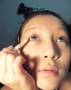 眼妆画法DIY步骤 3:看一下浅色眼影完成后的样子吧,是不是感觉变得比较有光泽了呢?