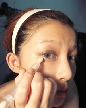 在画这种眼睛颜色比较重的烟熏眼妆时,一定要记住先将你的黑眼圈遮掩好哦!
