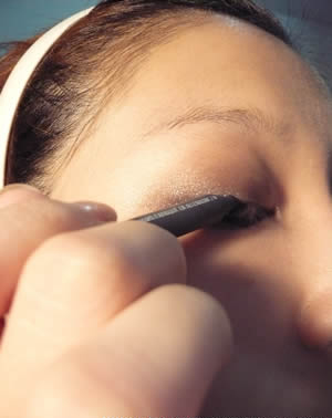 眼妆画法DIY步骤 8:接下来画眼线,画眼线的时候先用眼线笔打底,再上眼线液或是眼线胶。