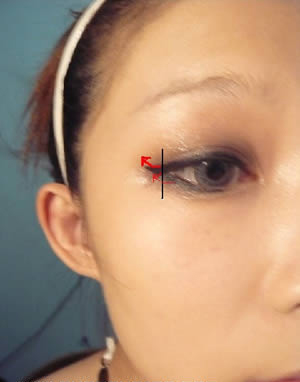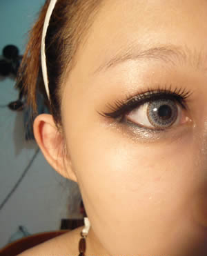 眼妆画法DIY步骤 10:再用眼线已补过刚刚眼线笔打底的位置,到眼尾的位置时可以稍作拉提哦!