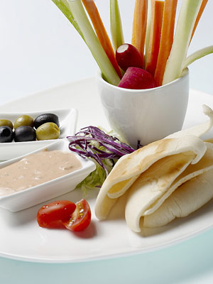 3. 蔬菜沙拉 蔬菜沙拉,不要加太多的沙拉酱或奶酪。三餐前先吃一小份沙拉,能使正餐的食量减少7%,如果吃的沙拉份量大,正餐的食量能减少12%。