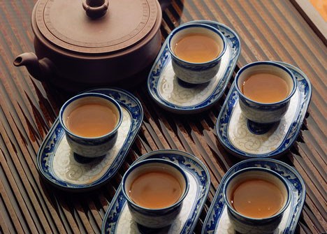 以下介绍几种茶饮料: (1)双乌茶 原料:乌龙茶5克,何首乌30克,干山楂20克,冬瓜皮20克。 制法:将何首乌、冬瓜皮、山楂同时入锅煮至山楂烂熟,滤渣取液,以其汤液冲泡乌龙茶,即可饮用。 (2)玉盘葫芦茶 健康提示: 原料:乌龙茶25克,干荷叶25克,陈葫芦10克,橘皮5克。 制法:将干荷叶、陈葫芦、橘皮共研为细末,混入茶叶中。欲饮时,可取少量冲泡,反复冲泡至茶水清淡为度。 (3)清络饮 原料:干荷叶50克,乌龙茶5克,丝瓜皮6克,西瓜翠衣5克。 制法: ①用纱布将干荷叶、丝瓜皮、西瓜翠衣、乌龙茶包好,放清水中浸泡清洗后备用。 ②砂锅中放水5杯,放入纱布包,以水煮熬至水沸,代茶饮之。 健康提示:许多人喜欢在大鱼大肉饱餐一顿之后喝些茶,这样也对健康不利。茶中的大量鞣酸,会与蛋白质结合生成鞣酸蛋白,这种物质有收敛作用,使肠道蠕动减弱,从而延长食物残渣在肠道内的滞留时间,进而导致大便干燥。所以,饱餐后最好先不要喝茶。 |