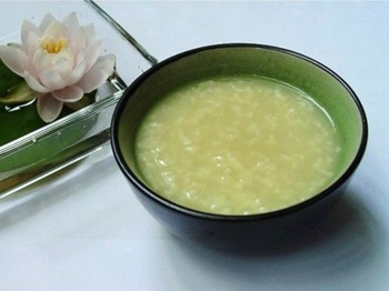 荷叶粥 组成:鲜荷叶50克(相当于四分之一张)撕成小片、粳米100克,白糖适量。 制法:将米洗净,加水煮粥,临熟时将鲜荷叶片放入粥中,焖约15分钟,再煮沸片刻即可。 用法:每天喝1碗,连续喝1个月。 功效:减肥降脂。 tips: 可以到荷塘采摘鲜荷叶,要选择叶大、完整、绿色、无斑的; 已经在荷塘中变干或刚长出的较小的荷叶不可用; 荷叶粥不宜在很热的时候喝; 荷叶粥最好在饭前半小时喝; 糖尿病患者不能加白糖; 荷叶粥的效果比起干荷叶茶要相对差一些,但口味清香,容易接受,有一定的护胃作用,而且有解暑清心的功效,适合儿童和有胃病的人食用; 干荷叶也可熬粥,味道差很多,但功效相同。[page]