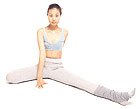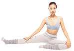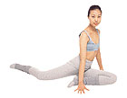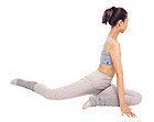右腿向内弯曲后坐在地上。左腿张开、伸直,此时要保持背部姿势正直。