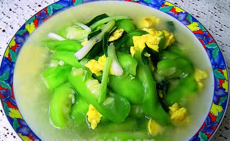 丝瓜 可解热消毒,通经络、化痰湿。用丝瓜、杏仁与鸡爪煮汤饮,消暑又去湿。夏日生痱子,若用丝瓜汁内服能凉血解毒。
