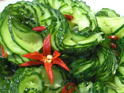 黄瓜 瓜类营养最丰富的一种,被誉为“济世良药”。经常食用有利排泄胃肠内腐败食物,对降低胆固醇有益。特别是经常唇焦舌燥、喉头干涸,以嫩黄瓜作水果(水果食品)生吃有奇效。
