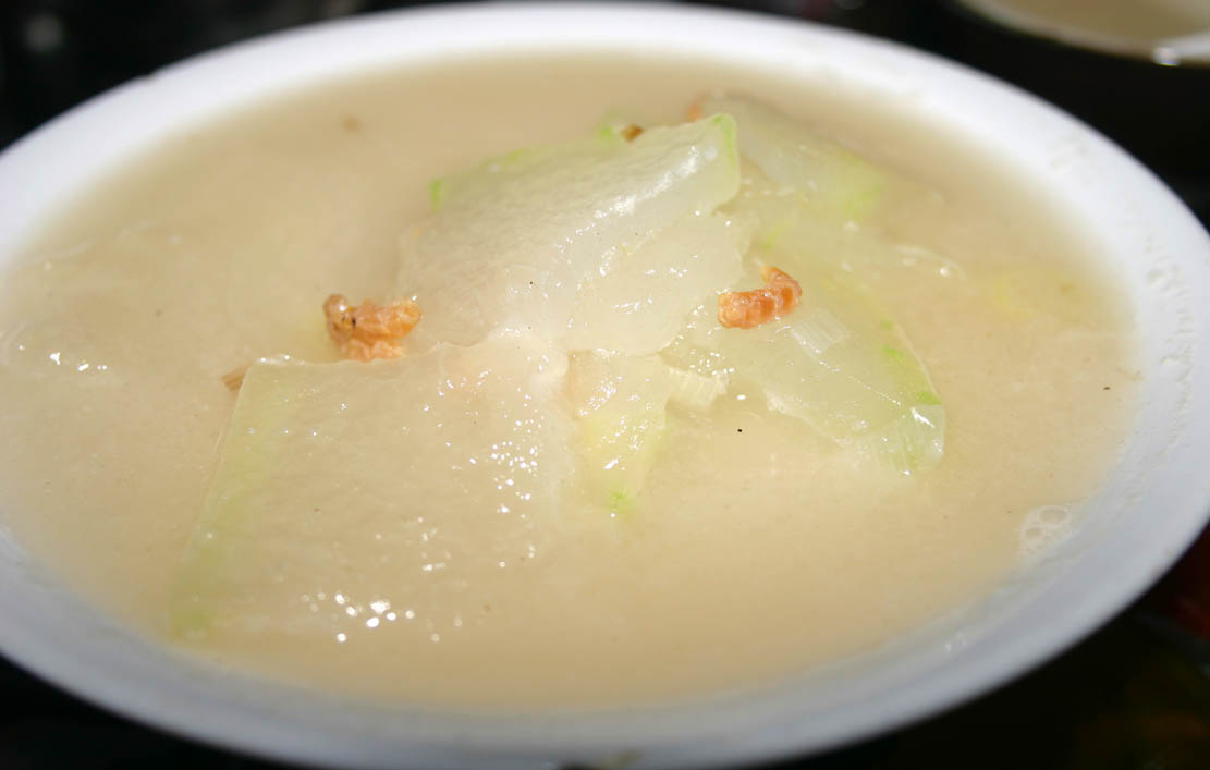 1、冬瓜茨仁糖水 用鲜老冬瓜(连皮)一斤,生茨仁三两,黄糖适量。先将老冬瓜洗净切大件,加上洗净的生茨仁放进瓦煲内煲一小时,然后加黄糖,待饮用。汤中老冬瓜甘清微寒,功能清热解暑,生津止渴。生茨仁,但淡利湿,黄糖清热生津。合而用之则可解暑清热,去暑湿。 2、荷叶冬瓜煲老鸭汤 用鲜荷叶一块,鲜老冬瓜一斤至斤半,老鸭公肉半斤。将上三样食品洗净,同放进瓦煲内,加清水适量煲汤,食盐调味,饮汤食冬瓜鸭肉。汤中鲜荷叶清暑利湿,冬瓜清热解暑,老雄鸭能滋阴养血,益胃生津。三者合用既能清热解暑去湿又能益胃生津。 3、石膏豆腐菜干汤 同生石膏二,鲜豆腐半斤,白菜干三两。先将石膏稍为打碎,然后用水洗净白菜干并作短时间浸泡。将三样食物共同放过瓦煲内加入适量清水煲汤。煲至豆腐块出现峰巢样小洞即可。加食盐少许调味饮汤。 (责任编辑:admin) |