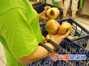 烂水果不要将就着吃 许多人觉得只要把水果腐烂的部分削下来一样可以食用,其实不是,水果腐烂后,在距离腐烂部分1厘米处的正常果肉中,仍可检出毒素。 实际检测证明,只要水果发生霉变腐烂,各种微生物特别是各种真菌都会在腐烂水果中不断繁殖,并产生大量有毒物质。这些有毒物质又不断从腐烂部分,通过水果汁液向未腐烂部分渗透、扩散,导致未腐烂部分同样含有微生物的代谢物。人吃了烂水果中的真菌毒素,可能发生头晕、头痛、恶心、呕吐、腹胀等症状,严重的还会出现抽风、昏迷,甚至危及生命。此外,水果腐烂后其所含的硝酸盐,还会变成有毒的亚硝酸盐。 专家提醒为了健康,烂水果就不要再吃了,如果是略有小斑或少量虫蛀,应用刀挖去腐烂虫蛀处及其周围超过1厘米处的好果部分;如是霉变腐烂或虫蛀面积达到或超过水果的1/3,这样的水果就坚决不能吃了。[page]
