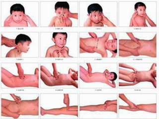 1 攒竹(天门) 位于两眉头连线中点至前发际成一直线。 用两拇指自下而上交替直推,称推攒竹,也称开天门。 2 坎宫 位于自眉头起沿眉向眉梢成一直线。 用两拇指桡侧自眉心向眉梢做分推,称推坎宫或分推坎宫。 3 太阳 位于眉梢与外眦连线中点向后一寸。 用两拇指桡侧推运,称推太阳或运太阳,向眼方向推运为补,向耳方向推运为泻。 4 天柱骨 位于颈后发际正中至大椎成一直线。 用拇指或食中指自上向下直推称推天柱。或用汤匙边蘸水边自上而下刮。 5 腹 位于腹部。 沿肋弓角边缘或自中脘至脐,向两旁分推,称分推腹阴阳;用掌或四指摩称摩腹。 6 脐 位于肚脐。 用中指端或掌根揉,称揉脐;用指或掌摩,称摩脐;用拇指和食、中指抓住肚脐抖揉,亦称揉脐。 7 丹田 位于脐下2-3寸之间。 用揉法揉称揉丹田;用摩法摩称摩丹田。 8 脊柱 位于大椎至长强成一直线。 用食中二指自上而下直推,称推脊;用捏法自下而上称为捏脊。 9 七节骨 位于第四腰椎至尾椎上端成一直线。 用食中指自上而下直推称推下七节骨; 用拇指桡侧缘自下而上直推称推上七节骨。 10 龟尾 位于尾椎骨端。 用拇指或中指端揉,称揉龟尾。 11 脾经 位于拇指末节罗纹面。 旋推为补,称补脾经,将患儿拇指屈曲,循拇指桡侧边缘向掌根方向直推亦为补;由指端向指根方向直推为清。两者统称推脾经。 12 肝经 位于食指末节罗纹面。 旋推为补,称补肝经;向指根方向直推为清,称清肝经。 |